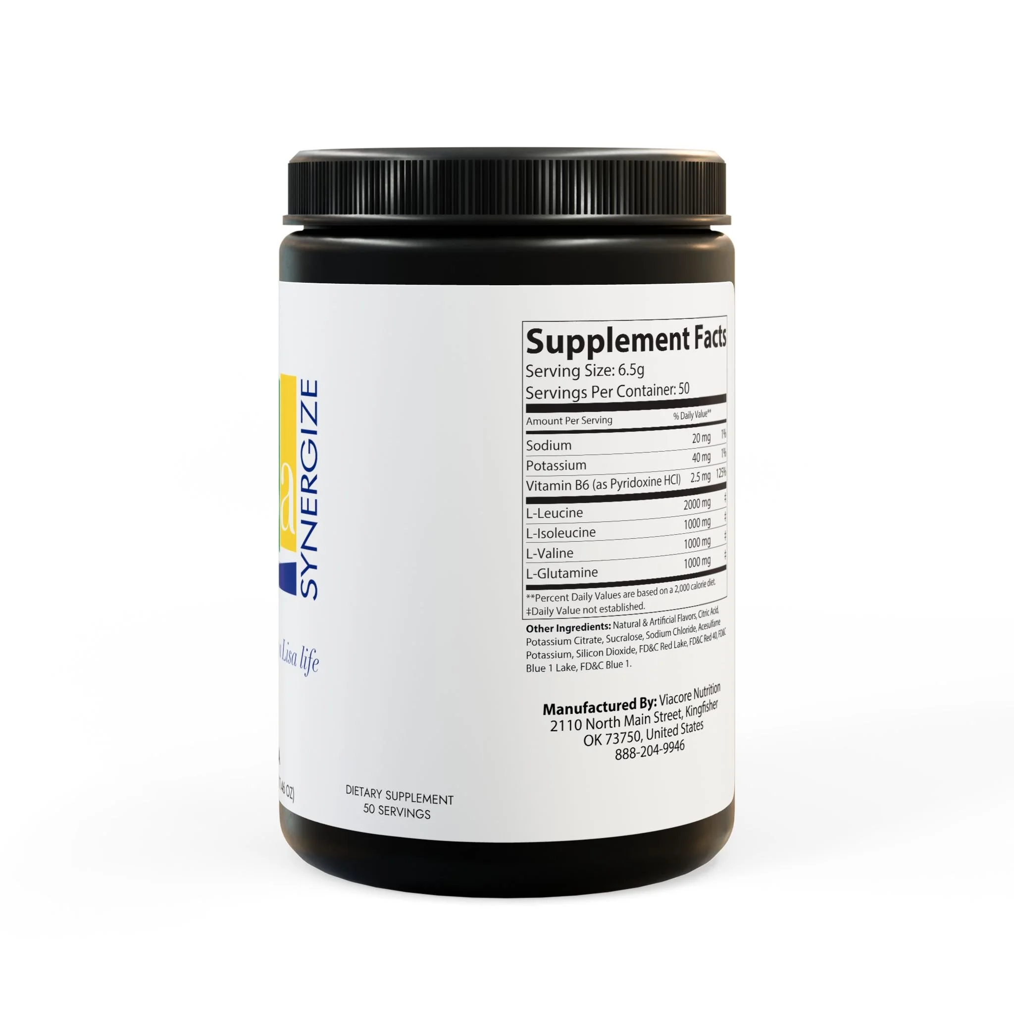 Key ingredients include Sodium, Potassium, Vitamin B6 (as Pyridoxine HCl), L-Leucine, L-Isoleucine, L-Valine, and L-Glutamine.